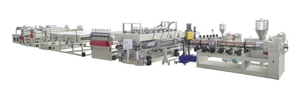 該設(shè)備用于PC、PP、PE等中空格子板的生產(chǎn)。產(chǎn)品廣泛用于建筑、裝飾、廣告布置、公路噪音以及包裝產(chǎn)品上。PP中空板材可替代紙箱做包裝箱,質(zhì)量輕、強(qiáng)度高、防潮、防腐。